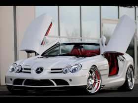 Mercedes Benz SLR McLaren: Featuring a full carbon-fiber monocoque, crash structures and body panels, the SLR is powered by a 617-horsepower supercharged 5.5-liter V8 that rockets the new SLR from zero to 60 miles per hour in under 3.8 seconds, on its way to a top speed exceeding 201 mphThe SLR uses amg speed shift 5-speed automatic transmission with 3 manual modes. For durability Mercedes selected a 5-speed transmission rather than their 7-speed gearbox which was more complex and used more parts.the new transmission make the cars really good in acceleration.